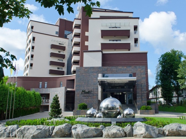 Luxurious hotel "Mirotel Resort & Spa" is located in famous corner of the Carpathian - resort Truskavets, 100 m from source of mineral water "Naftusya" and in 3 minutes walking from Central square. Unique minimalist design of the hotel, availability of advanced equipment and European level of service create conditions for unforgettable rest and recuperation. The hotel has 183 rooms of different level of comfort - "standard", "junior suite", "suite" and "presidential suite" , equipped with all amenities - refined furniture, TV, free Wi-Fi Internet access, air-conditioning, mini-bar, wardrobe and bathroom. There are three restaurants of Mediterranean and national cuisine in hotel, lounge bar will surprise with large choice of various drinks and cocktails. In addition, a highlight of the hotel "Mirotel Resort & Spa" is a large SPA-centre with sauna, swimming pool, massage room and solarium, where guests can not only rest, but also improve health. There is children's games room and babysitting service for little guests.