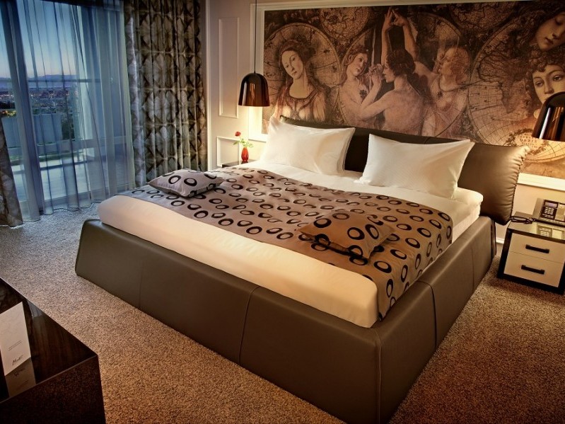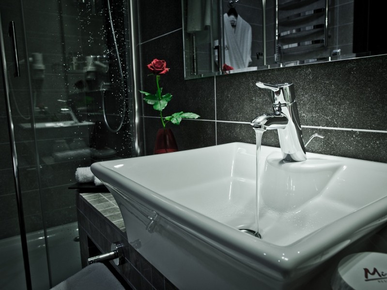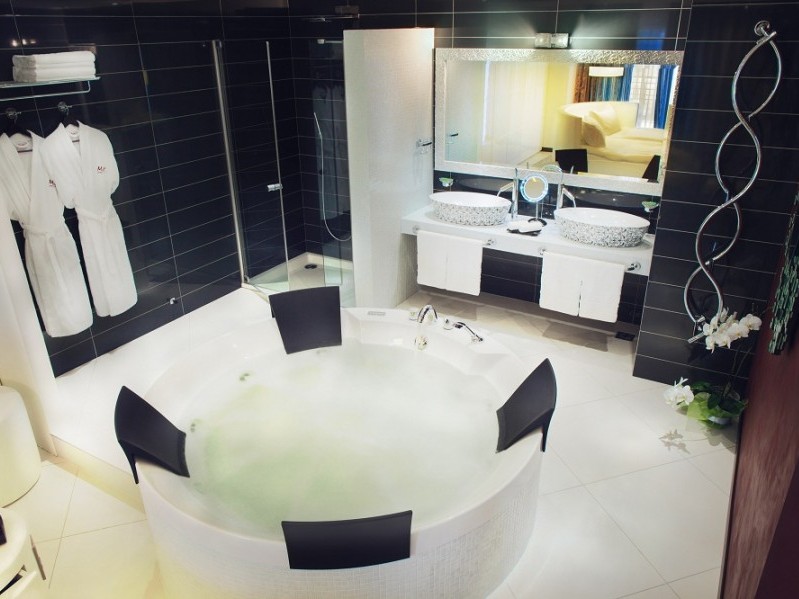 Presidential suite is large modern room, where guests can enjoy with cosy atmosphere of silence and calmness. Jacuzzi located directly beside the bed. Amenities in the room are double bed, jacuzzi, shower and toilet for guests, seperate bar, mini-bar, wireless Internet access, air-conditioning, toilet and bidet, wardrobe, safe, two IP TV, telephone, kettle, cups for coffee and tea, bathrobe and slippers, hair dryer, exclusive cosmetics Keiji.