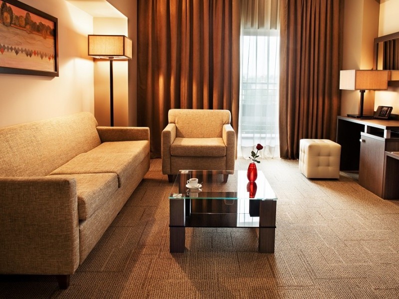 Comfortable rooms, designed for living two guests, are distinguished by a magnificent design and an increased degree of convenience. The apartment consists of a bedroom with a large double bed and a spacious living room equipped with stylish Italian furniture, a minibar, wireless internet, air conditioning, wardrobe, safe, two IP TV, telephone, electric kettle, coffee and tea cups The bathroom is equipped with a shower and a bathtub with round-the-clock cold and hot water supply, toilet, bidet, slippers and bathrobe, hair dryer, exclusive cosmetics from Keiji.