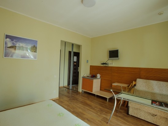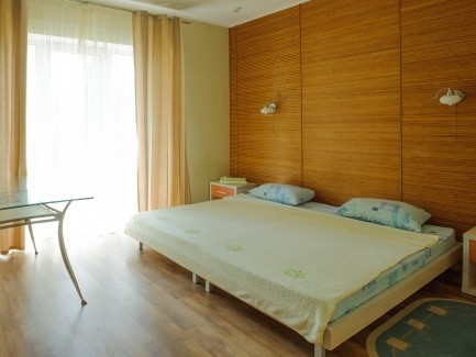 One cozy room has everything you need for your holiday. The room has a double bed, wardrobe, TV, air conditioning, wardrobe, bedside tables, electric kettle, tableware. The bathroom has a shower.