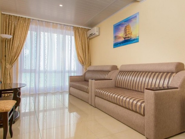 ![]() ![]() ApartmentsThe luxurious two-room suite has everything you need for a pleasant holiday by the sea. The room has a double bed, air conditioning, TV, closet, mini-fridge, tea, soft furniture. The bathroom includes bathrobes, hair dryer, shower.