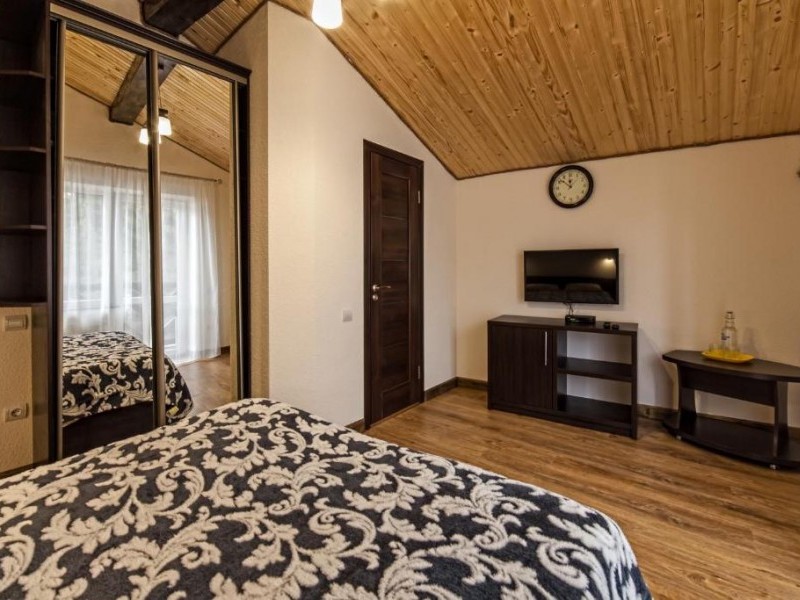 In a picturesque corner of the Carpathians, in the village Yablunitsa, it is a cozy mini-hotel "Alpine". The hotel includes a three-storey building and three cottages, each of which has a separate entrance. Each room has everything you need for a carefree holiday. Responsive staff "Alpine" will help to resolve any issues, and will help to organize excursions. Relax, gain strength, guests will be able to in the sauna with a swimming pool. For guests, there is car parking on site. The youngest guests can spend time on the playground near the hotel "Alpine". Scenic view from the rooms, home-like atmosphere in the rooms allow guests to forget the hustle and bustle of the city and immerse yourself in the atmosphere of a carefree holiday, and leave a lot of memories about the rest in the hotel "Alpine".