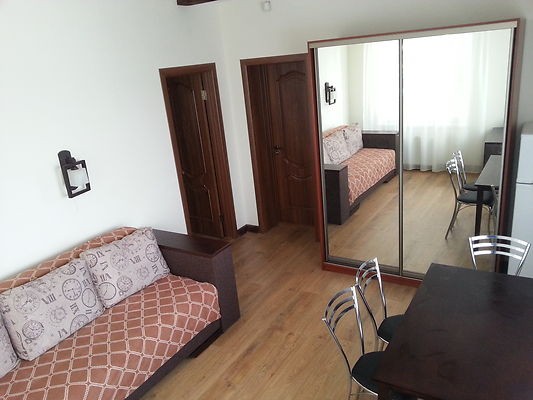 ![]() ![]() ![]() ![]() ![]() ![]() ![]() DoubleBright studio apartment of 16 sqm is equipped with modern furniture and appliances for the rest. The room has a double bed or two single beds, wardrobe, TV, refrigerator, a balcony. The bathroom has a shower, hair dryer, set of towels.