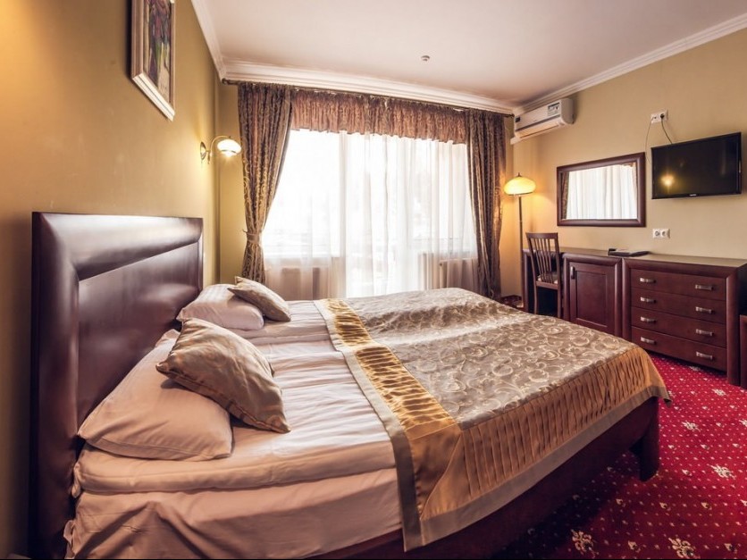 Cozy, comfortable room can accommodate 2 persons. The room has one double bed, wardrobe, TV, air conditioning, minibar. The bathroom has a shower, set of towels and a set of cosmetics.