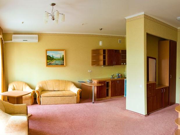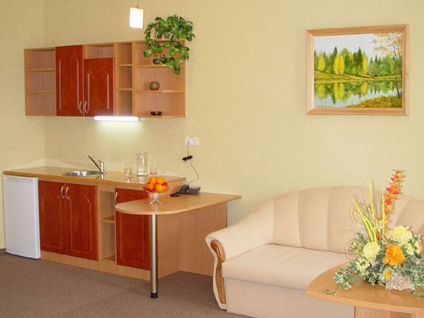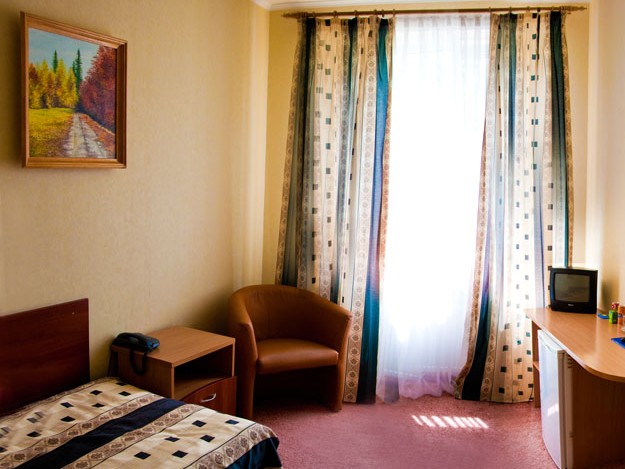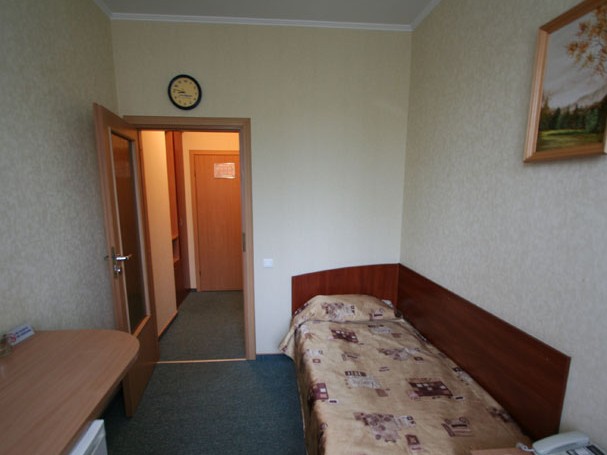 One room with a total area of 15 sq. m room is equipped with a single bed, bedside tables, wardrobe, telephone, television with cable TV, refrigerator. Bathroom with shower with round the clock hot and cold water, hair dryer, bathrobe, slippers, a set of mini perfumes.