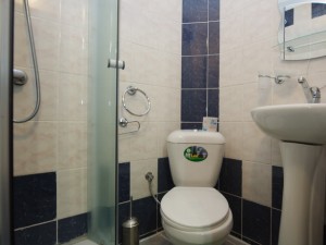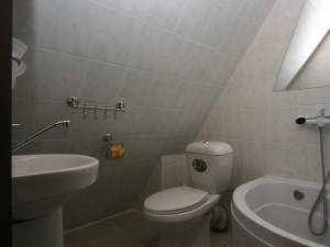 Spacious studio room of category A equipped with double bed, soft folding corner, wardrobe, hanger for clothes, TV, tea-table. Combined bathroom equipped with shower, hair dryer.