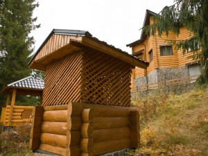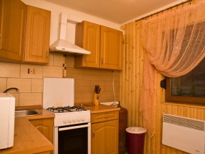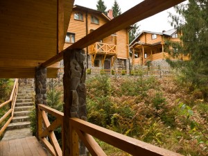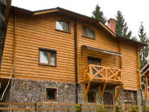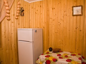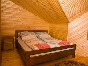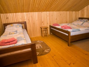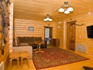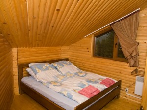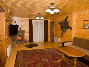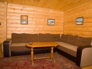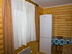 Двухэтажный коттедж общей площадью 140 кв.м. рассчитан на размещение десяти человек. Коттедж состоит из холла, кухни, четырех спален и двух санузлов. На первом этаже расположен холл, оснащенный мягким уголком, камином, креслом-качалкой, телевизором, ковром. Кухня оснащена всем необходимым для самостоятельного приготовления пищи - газовой плитой, холодильником, микроволновой печью, столом, посудой. На втором этаже располагаются четыре мансардных спальни. Две из спален оснащены одной двуспальной и одной односпальной кроватями, и две - только двуспальной. В каждой спальне есть шкаф, стол со стулом, прикроватные тумбы, торшер, коврики. Санузлы оснащены душевой кабиной с бесперебойной подачей холодной и горячей воды.