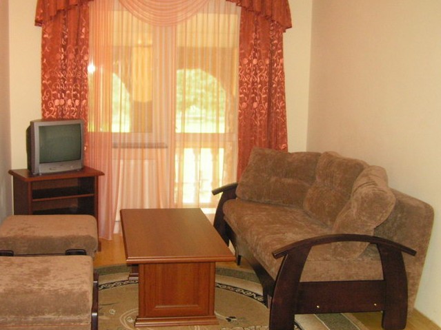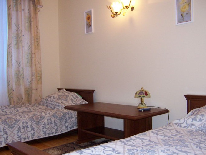 Уютный однокомнатный номер рассчитан на проживание двух персон. Номер оборудован двумя односпальными кроватями, прикроватными, тумбами, шкафом для одежды, телевизором со спутниковым телевидением. В ванной комнате установлена душевая кабина с круглосуточной подачей горячей и холодной воды.