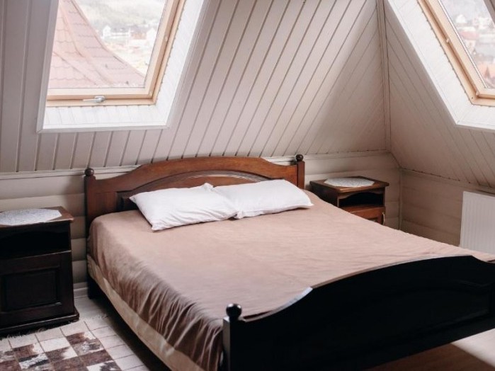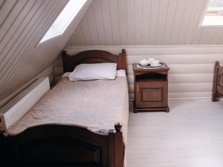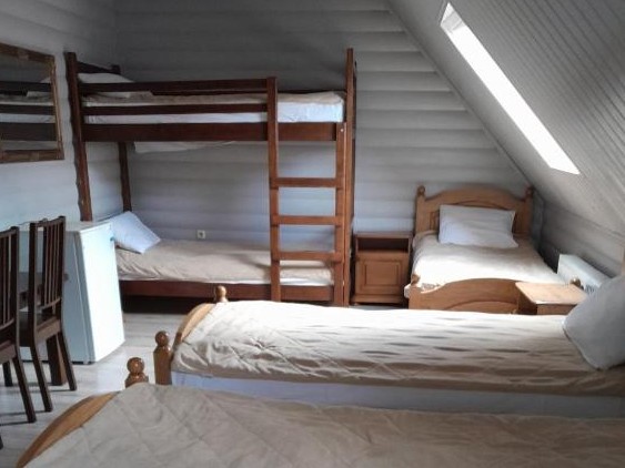 Мансардный шестиместныйОднокомнатный уютный номер оснащен всем незаменимым, чтобы создать атмосферу комфортного отдыха гостям. В номере имеется 6 односпальных кроватей, письменный стол, шкаф для одежды, телевизор. Ванная комната оборудована комплектом махровых полотенец, расположена душевая кабина, есть косметический набор. | Даты проживания | Тип питания | Количество человек | Цена за сутки |