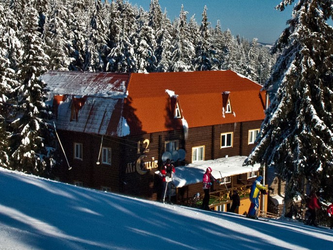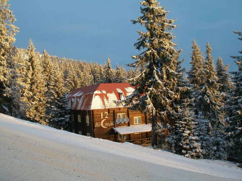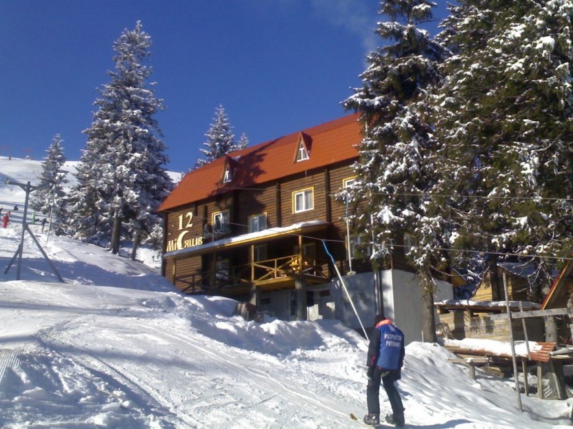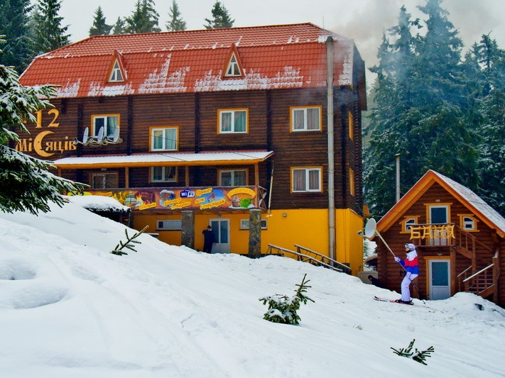 Отель "12 Месяцев" расположен в урочище Драгобрат на высоте 1550 м над уровнем моря. Отель представляет собой четырехэтажный деревянный сруб, где гостям предложат 19 комфортабельных номеров. Все номера оборудованы всеми необходимыми удобствами для прекрасного отдыха: комфортной мебелью, современной техникой, ванная комната с современной сантехникой, с окон отеля открываются прекрасные пейзажи гор. В ресторане отеля гостей порадуют широким выбором блюд европейской, украинской и гуцульской кухни. На открытой террасе можно наслаждаться горными пейзажами с чашечкой ароматного кофе или другими напитками с бара. Поможет расслабиться душой и телом баня на дровах, которая расположена на самой территории гостиницы. После насыщенного дня можно расслабиться в русской бане, которая находится на территории отеля. К услугам гостей предлагается сушка и прокат горнолыжного снаряжения, экскурсионное обслуживание, бильярд.