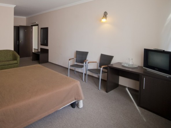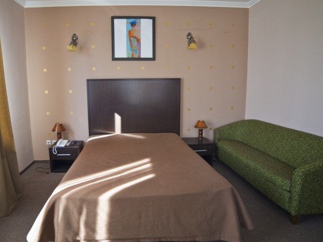 Однокомнатный номер рассчитан на проживание двух персон. Номер оборудован двуспальной кроватью, прикроватными, тумбами, шкафом для одежды, телевизором со спутниковым телевидением, телефоном, мини-баром. В ванной комнате установлена душевая кабина или ванная с круглосуточной подачей горячей и холодной воды, феном, набором полотенец.