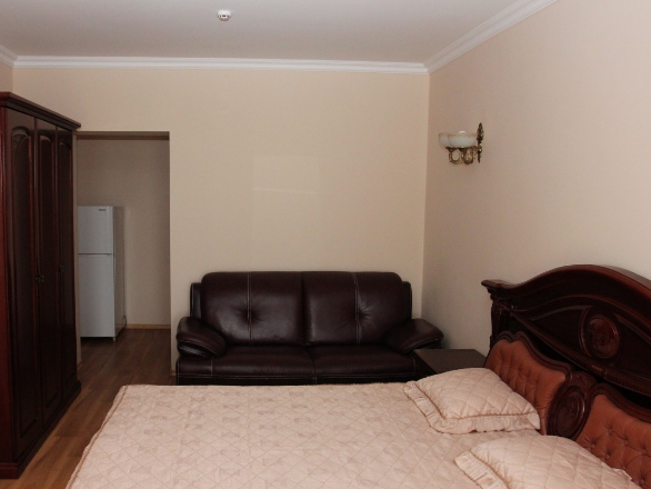Роскошный номер создан для людей, которые ценят комфортный отдых. В номере есть сейф, двуспальная кровать, шкаф, телевизор, кондиционер, интернет, набор посуды, холодильник, электрочайник. В ванной комнате есть душевая кабина, фен, комплект полотенец, косметический набор.