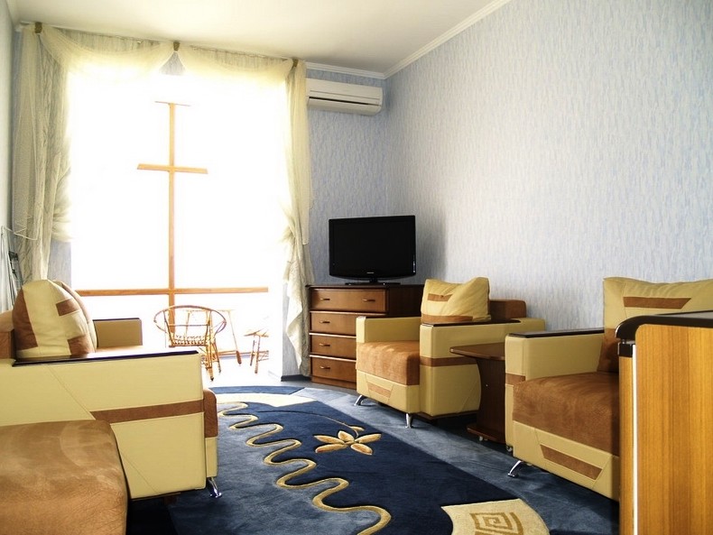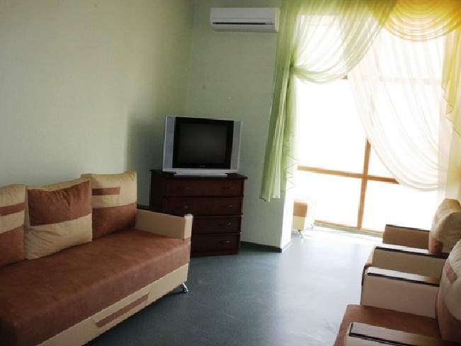 Однокомнатный уютный номер оснащен всем незаменимым для комфортабельного отдыха. В номере есть двуспальная кровать, телевизор, комод, кондиционер, холодильник. Ванная комната оснащена душевой кабиной.