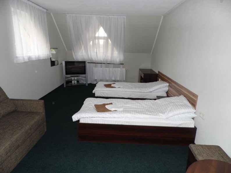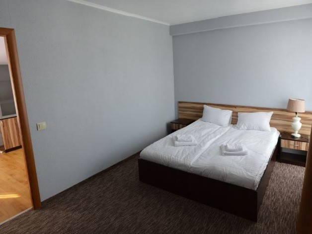 Комплектация номеров: мини - холодильник, телевизоры со спутниковым телевидением, кондиционер. Санузел: душевая кабина, биде, умывальник, встроенный в мебельную тумбу и зеркало. Горячая вода круглосуточно, отопление индивидуальное, которое гость может регулировать. Также в каждом номере есть балкон.