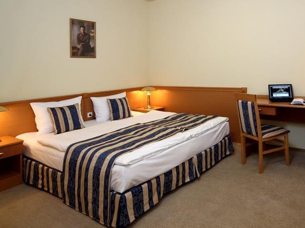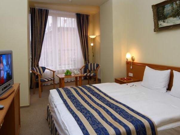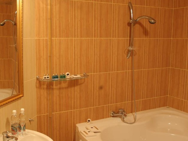 Просторный однокомнатный номер, общая площадь которого составляет 39 кв.м., рассчитан на поселение до 4 человек. Номер оборудован двухспальной кроватью, мягким уголком, прикроватными тумбами, журнальным столиком, рабочим столом с подключением к скоростному Интернету, телевизором со спутниковым ТВ, шкафом, телефоном с прямым международным доступом, мини-баром, гардеробом. В номере также предусмотрен кондиционер и электронный замок. Санузел оснащен ванной с круглосуточной подачей холодной и горячей воды, биде, феном.