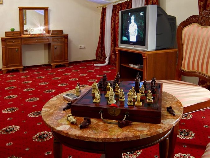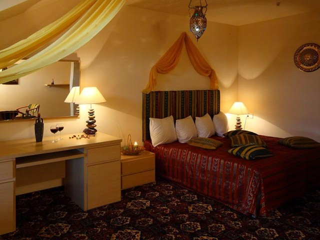 Загадочный однокомнатный номер оформлен в египетском стиле, общая площадь которого составляет 39 кв.м., рассчитан на поселение до 4 человек. Номер оборудован двухспальной кроватью, мягким уголком, прикроватными тумбами, журнальным столиком, рабочим столом с подключением к скоростному Интернету, телевизором со спутниковым ТВ, шкафом, телефоном с прямым международным доступом, мини-баром, гардеробом. В номере также предусмотрен кондиционер и электронный замок. Санузел оснащен ванной с круглосуточной подачей холодной и горячей воды, биде, феном.