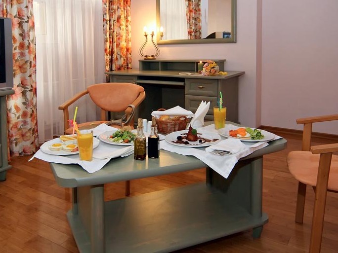 Комфортабельный однокомнатный номер оформлен в розкошном французком стиле, общая площадь которого составляет 39 кв.м., рассчитан на поселение до 4 человек. Номер оборудован двухспальной кроватью, мягким уголком, прикроватными тумбами, журнальным столиком, рабочим столом с подключением к скоростному Интернету, телевизором со спутниковым ТВ, шкафом, телефоном с прямым международным доступом, мини-баром, гардеробом. В номере также предусмотрен кондиционер и электронный замок. Санузел оснащен ванной с круглосуточной подачей холодной и горячей воды, биде, феном.