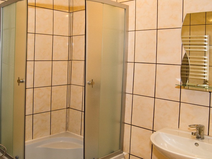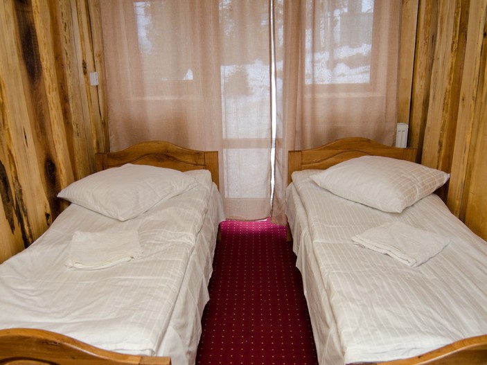 Тихий и уютный однокомнатный номер, общая площадь которого составляет 15 кв.м., рассчитан на двух персон. Номер оборудован всеми необходимыми удобствами: двумя односпальными кроватями (можно сдвигать), прикроватными тумбами, телевизором со спутниковым ТВ, шкафом для одежди. Санузел оснащен душевой кабинкой с круглосуточной подачей холодной и горячей воды.