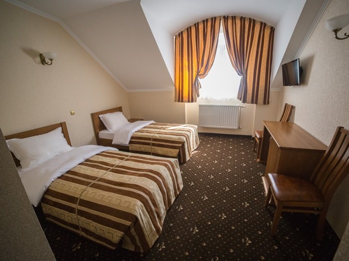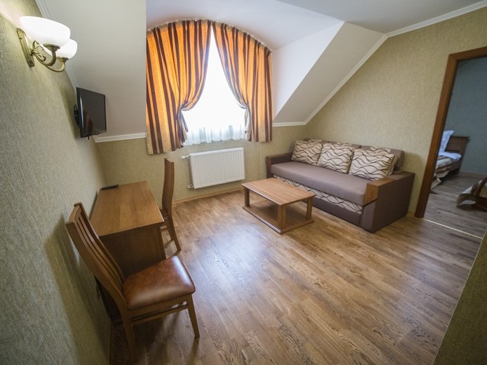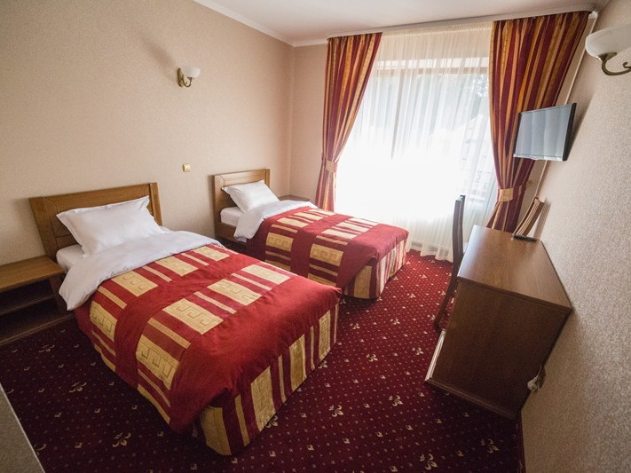 Однокімнатний номер площею 20 кв. м має все необхідне для незабутнього відпочинку. У номері є інтернет, телевізор, система електронного замка, холодильник, міні-бар, письмовий стіл, стілець, шафа, чайний набір. У ванній кімнаті є душова кабіна, фен, косметичний набір, комплект рушників, халат, тапочки.
