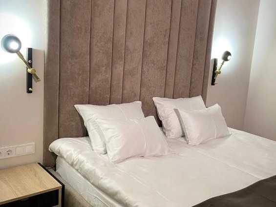 ![]() ![]() Апартаменти з 2 спальнямиРозкішні апартаменти з 2 спальнями призначені для повноцінного відпочинку з родиною. У номері є 2 спальні з двоспальним ліжком, телевізором, необхідними меблями. Кухня обладнана плитою, холодильником, мікрохвильовою піччю, посудом. Санвузол оснащений душовою кабіною, комп'ютером.
